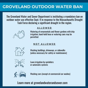 GROVELAND — The Groveland Water and Sewer Department is issuing a mandatory water ban as of Tuesday, Sept. 9, in response to the Massachusetts Drought…