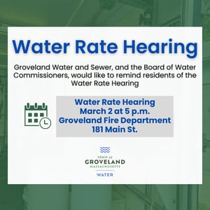 The Groveland Water and Sewer Department and the Board of Water Commissioners will hold a public water rate hearing on March 2 at 5 p.m.…