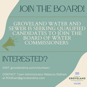 Superintendent Colin Stokes and the Groveland Water and Sewer Board of Commissioners would like to thank residents and town meeting voters for attending the Annual…